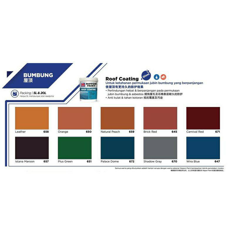 It is easy to. Get the best price for 5l Nippon Paint Roof Coating Cat Bumbung among 5 products Shop compare and save more with BigGo. Membuat pemasangan atap genting dan juga repair bumbung bocor.